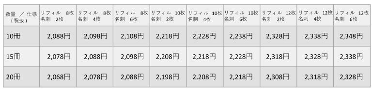 重要書類バインダーの料金表