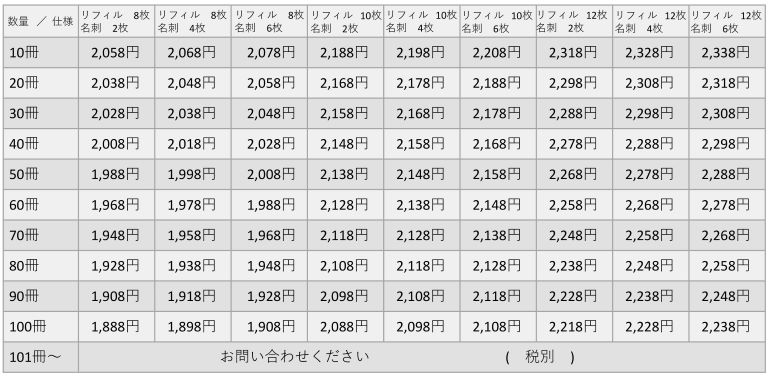 重要書類バインダーの料金表