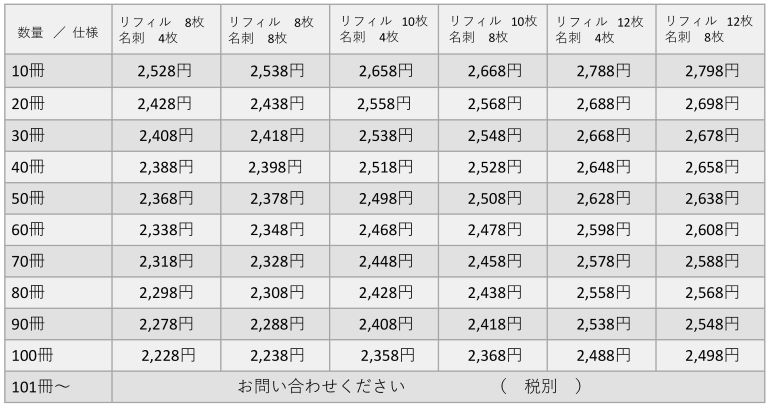 かんたん注文/見開き高級タイプ リング式 斜め平ポケット はこちら