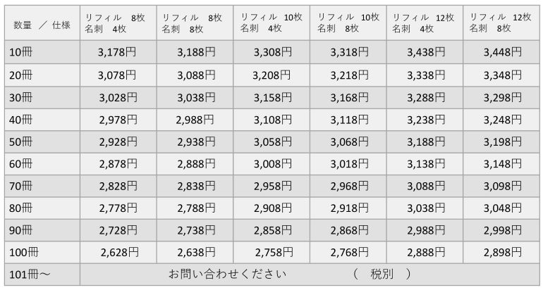 重要書類バインダーの料金表